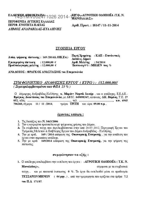 3. ΣΥΜΦΩΝΗΤΙΚΟ ΕΡΓΟΥ ΑΓΡΟΤΙΚΗ ΟΔΟΠΟΙΪΑ ΤΚ Ν.ΜΑΝΟΛΑΔΑΣ