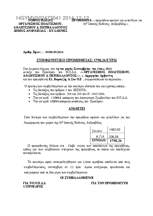 Αναζήτηση σε προκηρύξεις και συμβάσεις για: