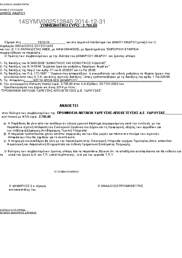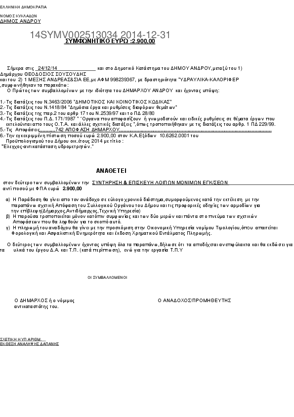 Αναζήτηση σε προκηρύξεις και συμβάσεις για: