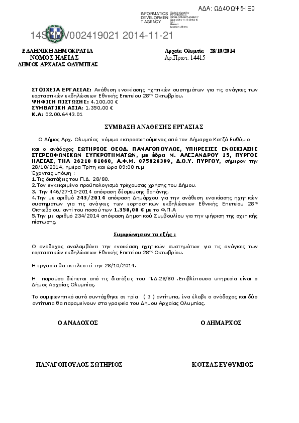 3. ΕΝΟΙΚΙΑΣΗ ΗΧΗΤΙΚΩΝ ΣΥΣΤΗΜΑΤΩΝ ΓΙΑ ΤΙΣ ΑΝΑΓΚΕΣ ΤΩΝ ΕΟΡΤΑΣΤΙΚΩΝ ΕΚΔΗΛΩΣΕΩΝ ΕΘΝΙΚ. ΕΠΕΤΕΙΟΥ 28ΗΣ ΟΚΤΩΒΒ