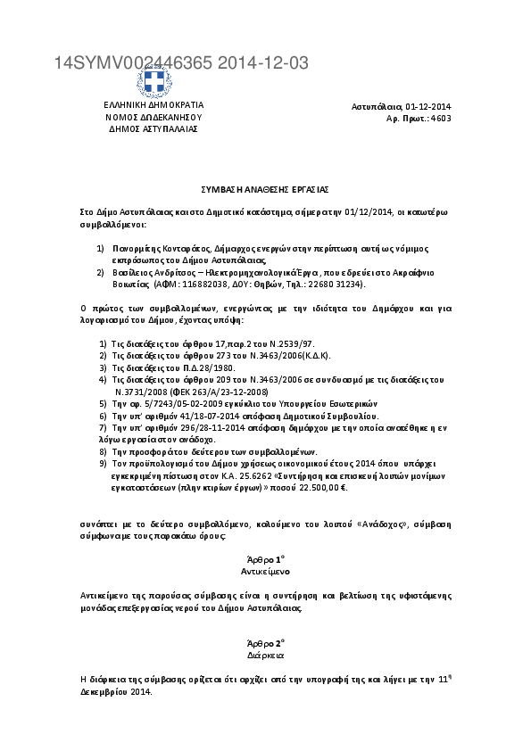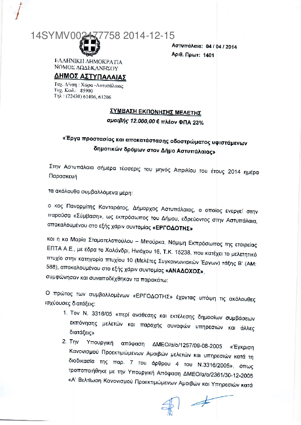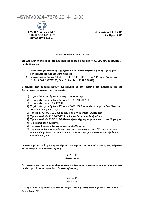 3. ΣΥΜΒΑΣΗ ΓΙΑ ΕΡΓΟ ''ΚΑΤΑΣΚΕΥΗ ΤΕΧΝΙΚΩΝ ΕΡΓΩΝ-ΟΧΕΤΩΝ ΣΤΗΝ ΠΕΡΙΟΧΗ ΡΟΔΙΑ''