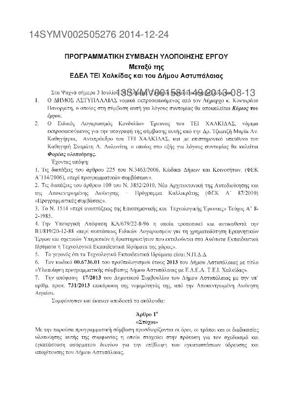 10. ΥΛΟΠΟΙΗΣΗ ΠΡΟΓΡΑΜΜΑΤΙΚΗΣ ΣΥΜΒΑΣΗΣ ΔΗΜΟΥ ΑΣΤΥΠΑΛΑΙΑΣ ΜΕ ΕΔΕΛ ΤΕΙ ΧΑΛΚΙΔΑΣ