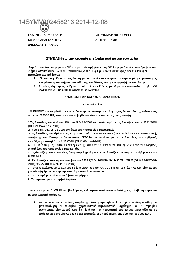 7. ΣΥΜΒΑΣΗ ΓΙΑ ΤΗΝ ΠΡΟΜΗΘΕΙΑ ΕΞΟΠΛΙΣΜΟΥ ΠΥΡΟΠΡΟΣΤΑΣΙΑΣ
