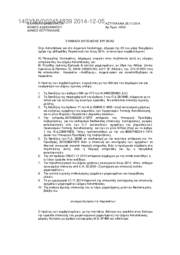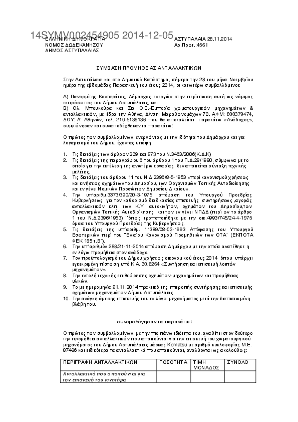 4. ΣΥΜΒΑΣΗ ΠΡΟΜΗΘΕΙΑΣ ΑΝΤΑΛΛΑΚΤΙΚΩΝ ΓΙΑ ΕΠΙΣΚΕΥΗ ΜΗΧΑΝΗΜΑΤΟΣ