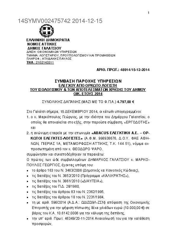 10. ΕΛΕΓΧΟΣ ΑΠΟ ΟΡΚΩΤΟ ΛΟΓΙΣΤΗ ΤΟΥ ΙΣΟΛΟΓΙΣΜΟΥ & ΤΩΝ ΑΠΟΤΕΛΕΣΜΑΤΩΝ ΧΡΗΣΗΣ ΤΟΥ ΔΗΜΟΥ ΟΙΚ. ΕΤΟΥΣ 2014