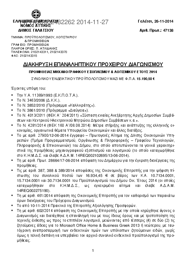 3. ΠΡΟΜΗΘΕΙΑ ΜΗΧΑΝΟΓΡΑΦΙΚΟΥ ΕΞΟΠΛΙΣΜΟΥ & ΛΟΓΙΣΜΙΚΟΥ ΕΤΟΥΣ 2014