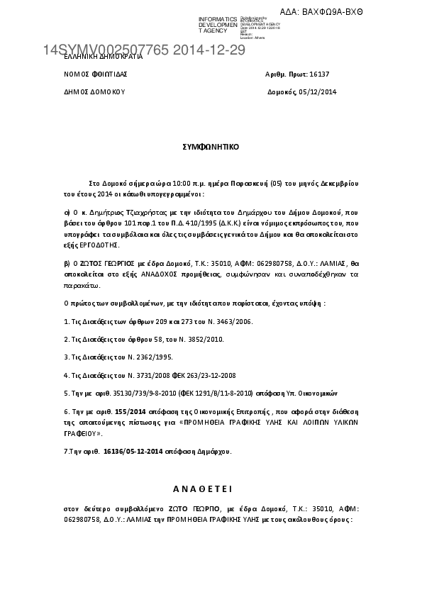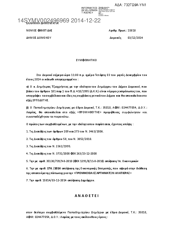 Αναζήτηση σε προκηρύξεις και συμβάσεις για: