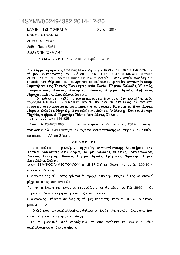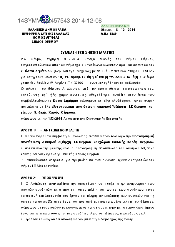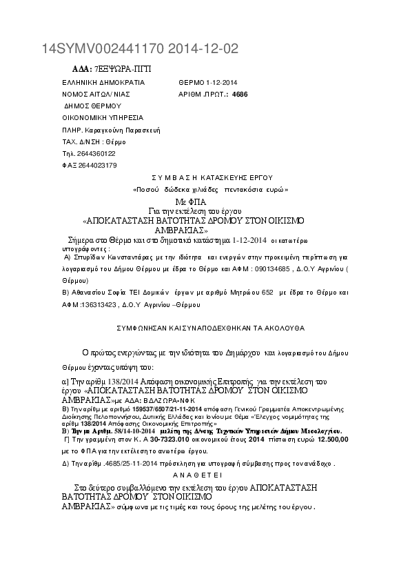 1. ΣΥΜΒΑΣΗ ΕΡΓΟΥ «ΑΠΟΚΑΤΑΣΤΑΣΗ ΒΑΤΟΤΗΤΑΣ ΔΡΟΜΟΥ ΣΤΟΝ ΟΙΚΙΣΜΟ ΑΜΒΡ