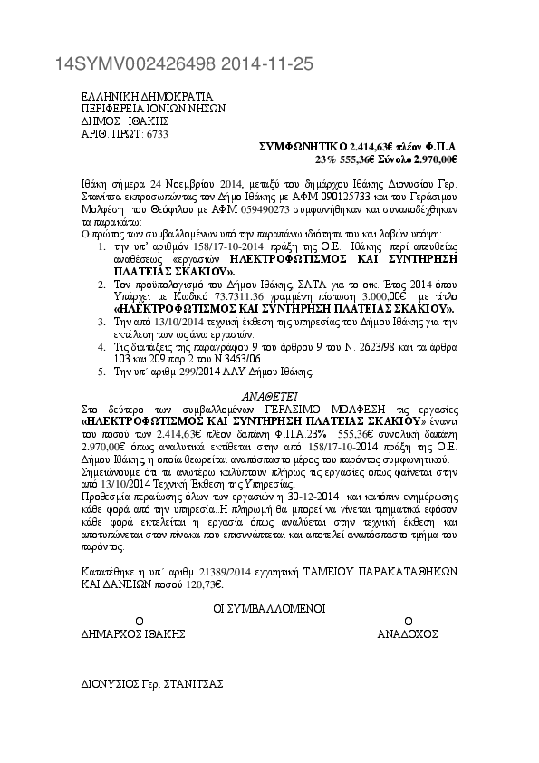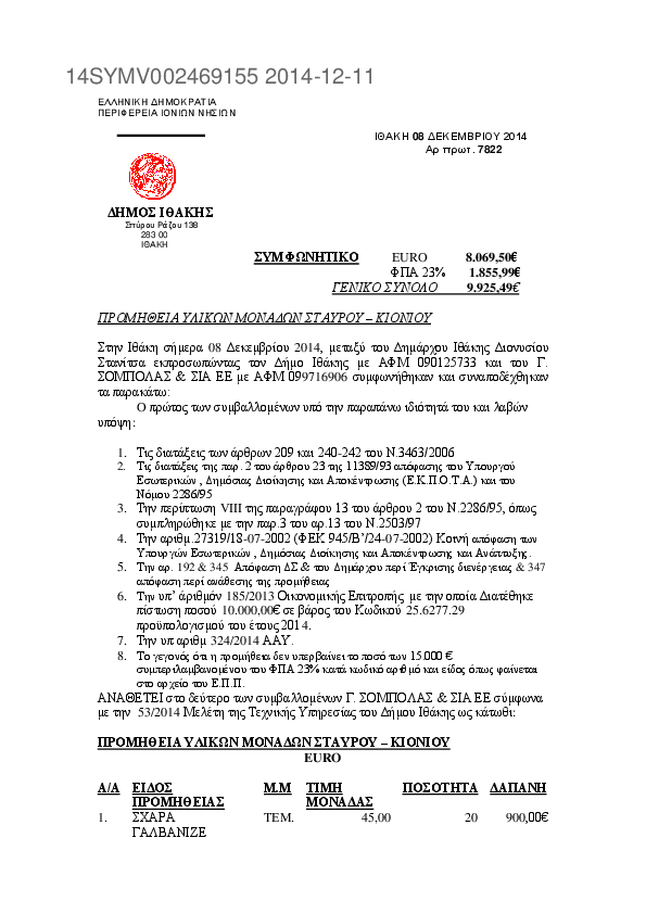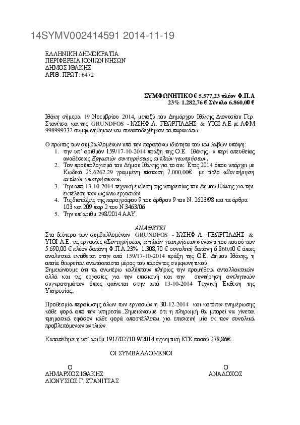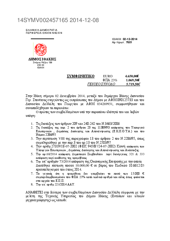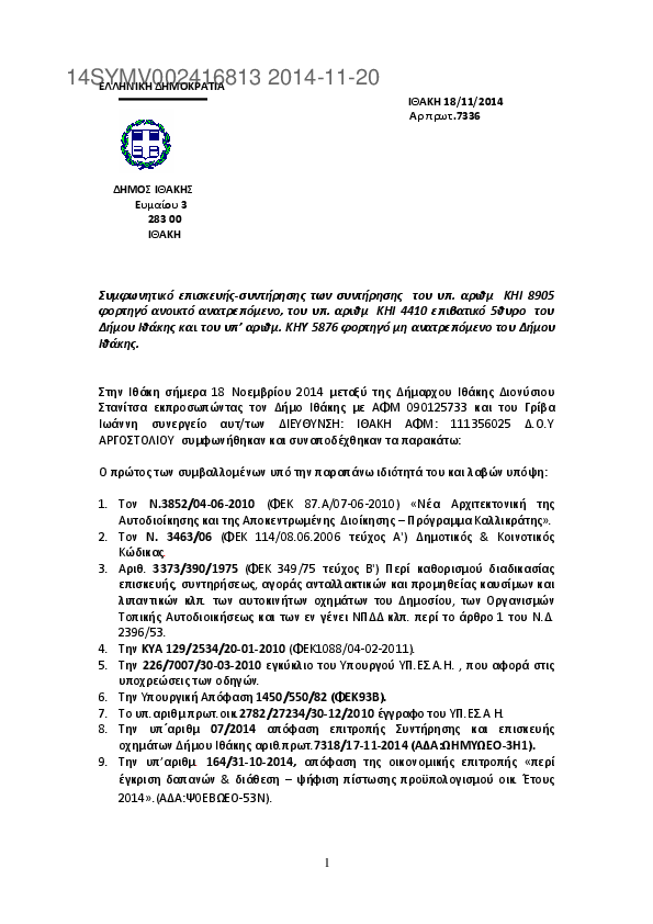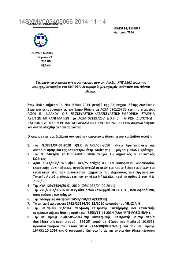 1. Συμφωνητικό επισκευής-συντήρησης των υπ. Αριθμ. ΚΗΥ 5861 φορτηγό απορριμματοφόρο και ΚΗΙ 4911 λεωφορ
