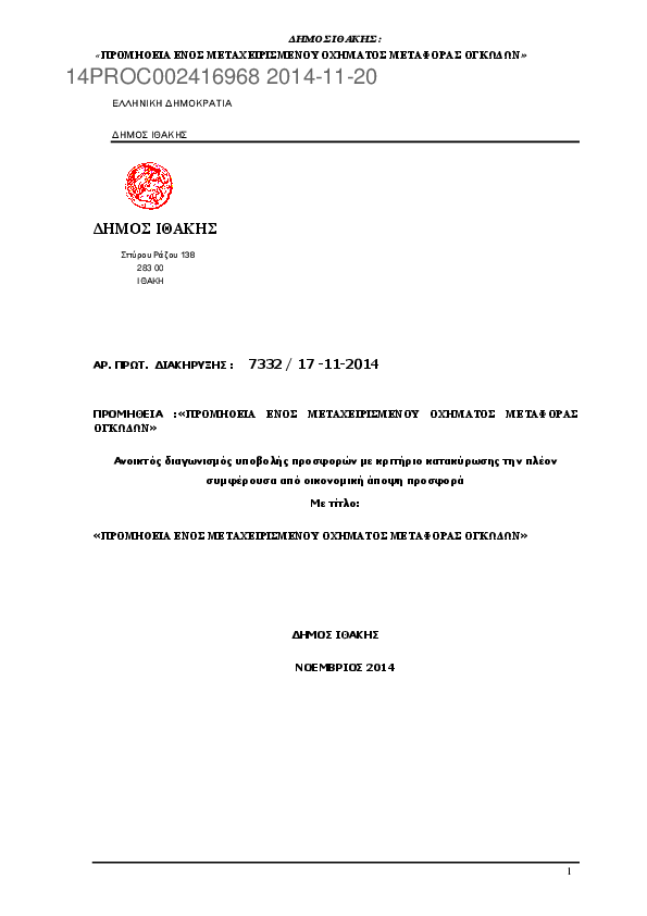 2. ΠΡΟΜΗΘΕΙΑ ΕΝΟΣ ΜΕΤΑΧΕΙΡΙΣΜΕΝΟΥ ΟΧΗΜΑΤΟΣ ΜΕΤΑΦΟΡΑς ΟΓΚΟΔΩΝ