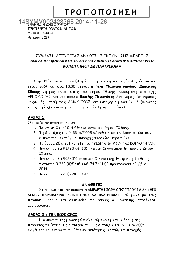 6. ΜΕΛΕΤΗ ΕΦΑΡΜΟΓΗΣ ΤΙΤΛΟΥ ΓΙΑ ΑΚΙΝΗΤΟΥ ΔΗΜΟΥ ΙΘΑΚΗΣ ΠΛΑΤΡΕΙΘΙΑ