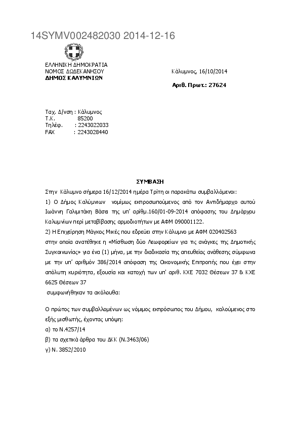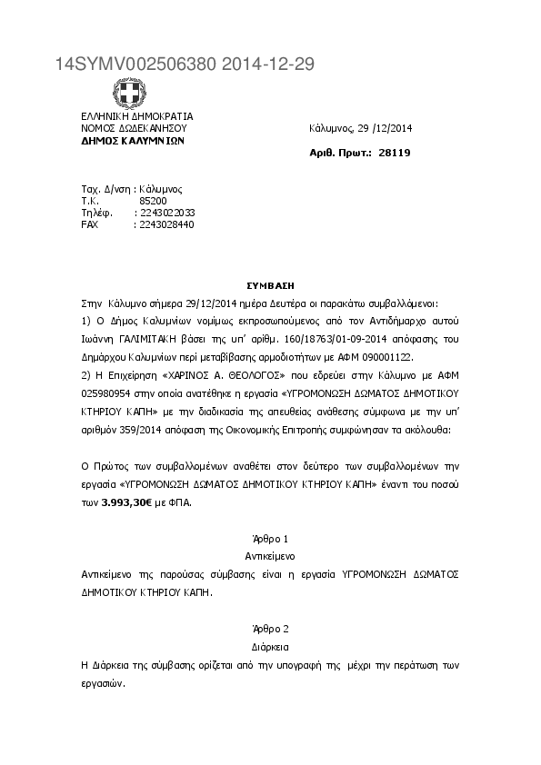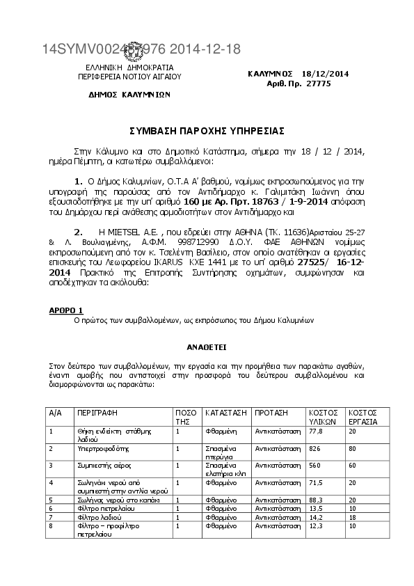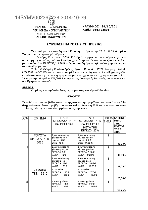 3. Συντήρηση Οχημάτων και Μηχανημάτων Δήμου Καλυμνίων κατηγορίες «Μηχανολογικά και «Φανοποιεία»