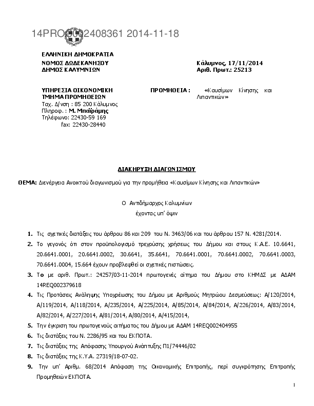 Αναζήτηση σε προκηρύξεις και συμβάσεις για: