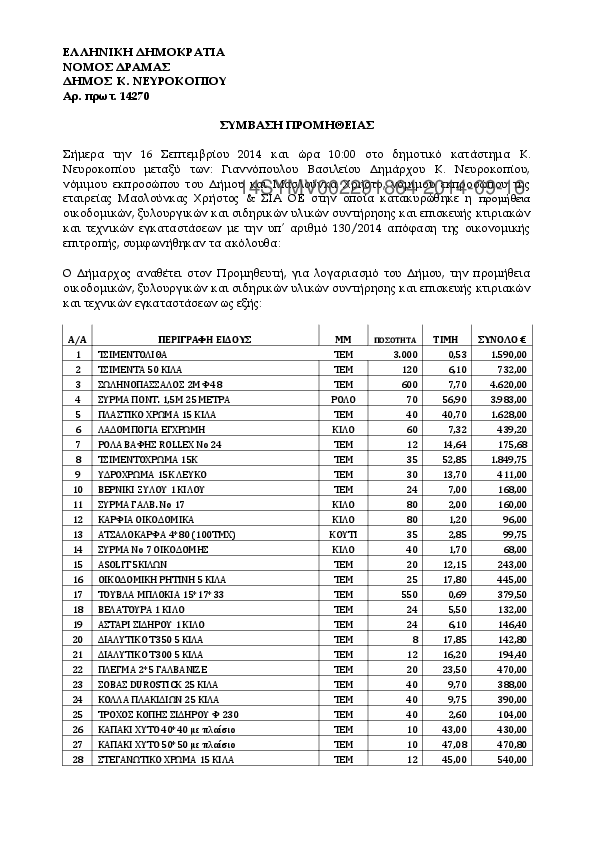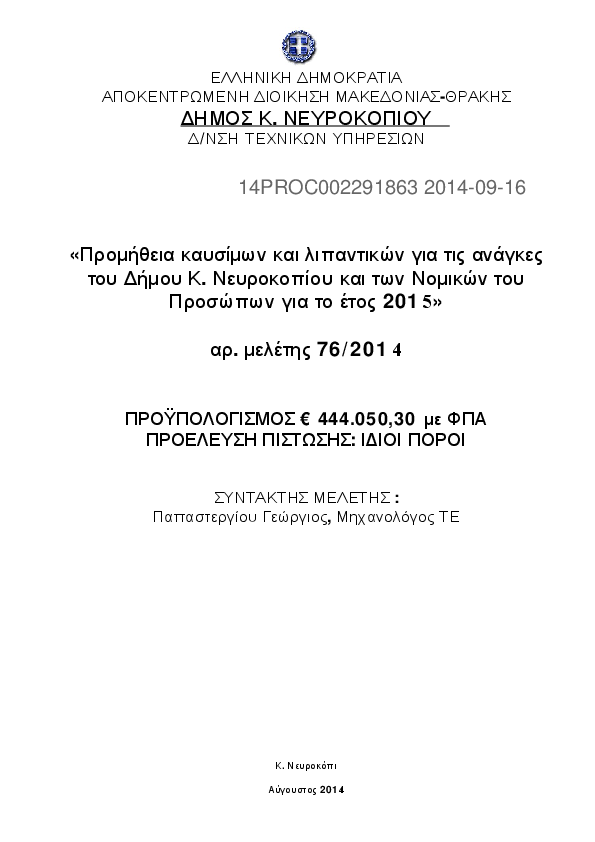 1. Προμήθεια καυσίμων και λιπαντικών για τις ανάγκες του Δήμου Κ. Νευροκοπίου και των Νομικών του Προσώ