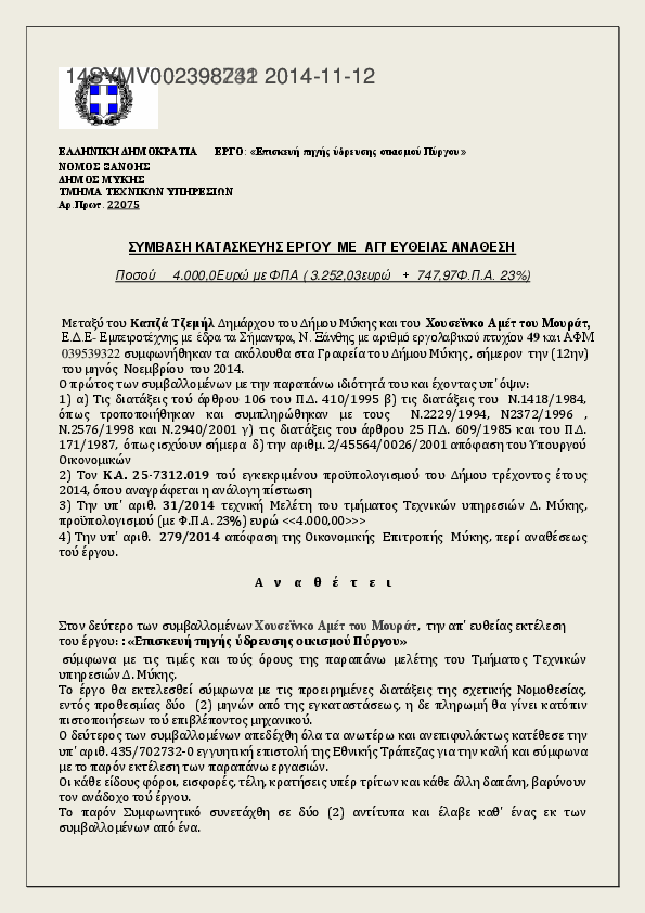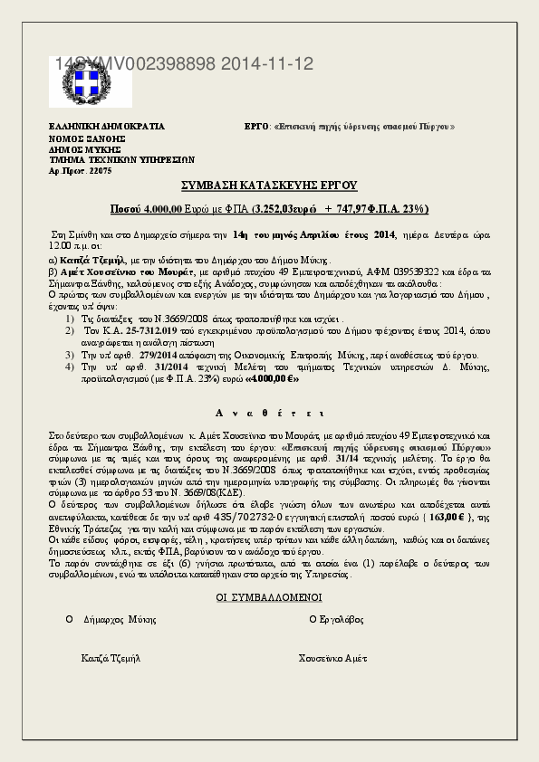9. ΣΥΜΒΑΣΗ ΓΙΑ ΕΡΓΑΣΙΕΣ ΕΚΧΙΟΝΙΣΜΟΥ ΣΕ ΟΙΚΙΣΜΟΥΣ Δ ΜΥΚΗΣ