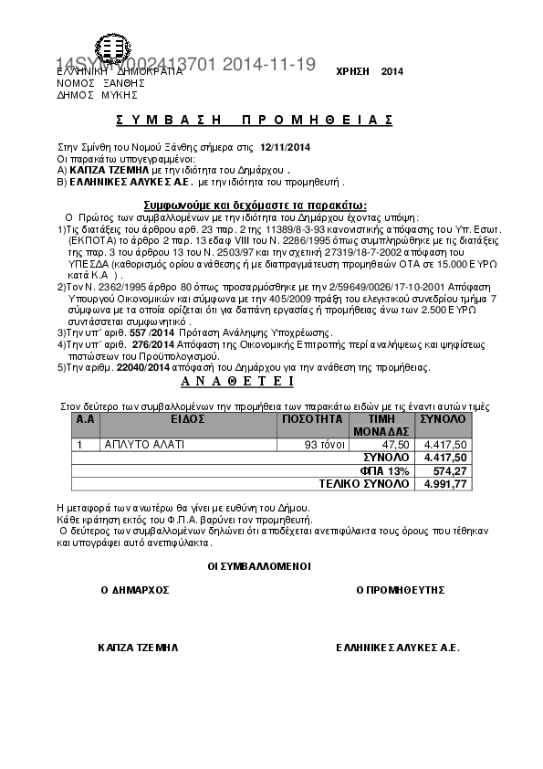 5. Σ Υ Μ Φ Ω Ν Η Τ Ι Κ Ο Ανάθεσης εργασιών «Mεταφορά άπλυτου αλατιού’