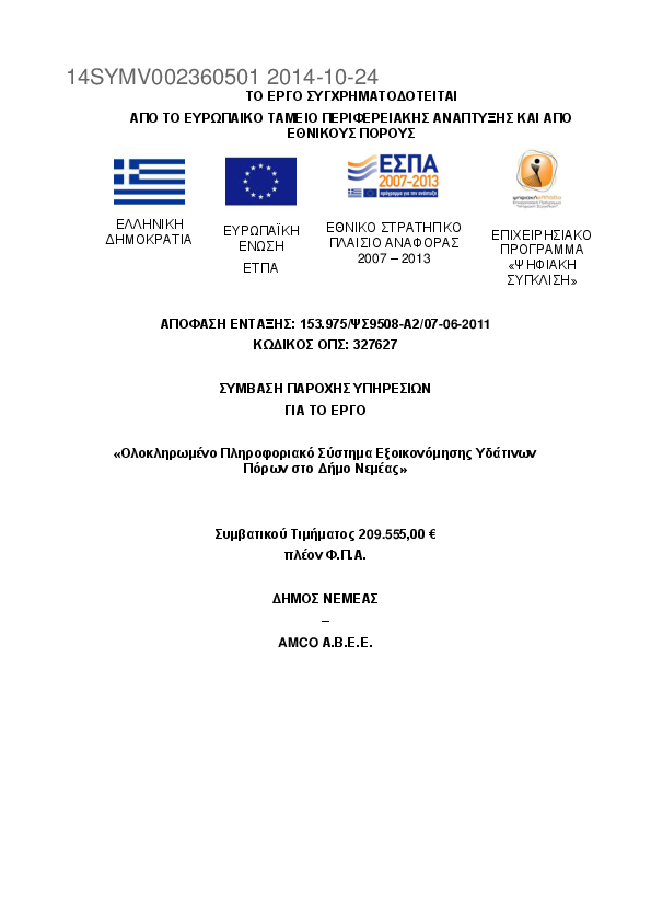 2. Ολοκληρωμένο Πληροφοριακό Σύστημα Εξοικονόμησης Υδάτινων Πόρων στο Δήμο Νεμέας