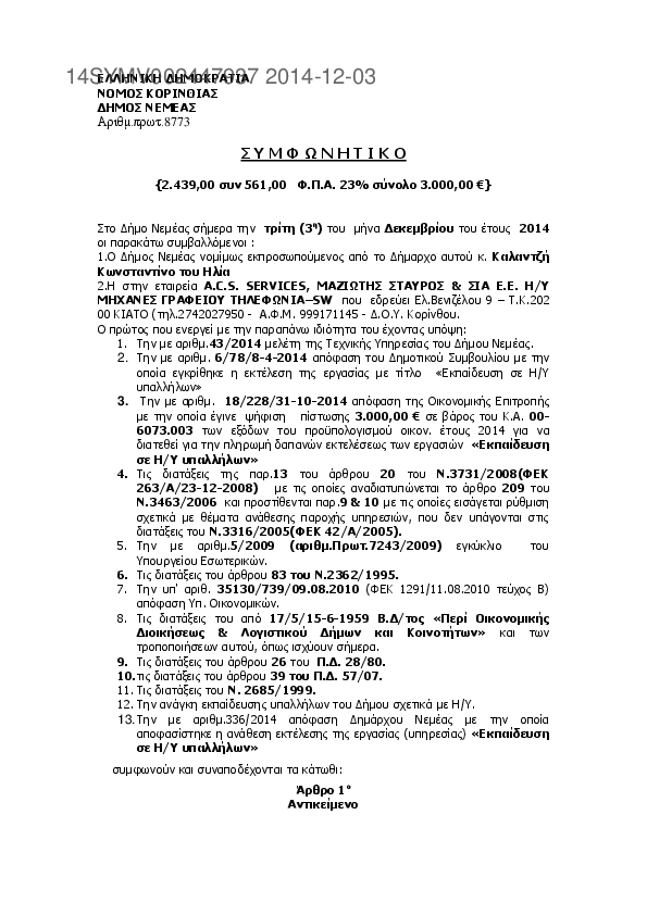 8. Σύμβαση εορταστικές εκδηλώσεις Χριστουγέννων