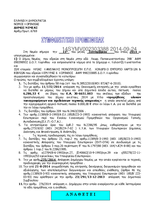 Αναζήτηση σε προκηρύξεις και συμβάσεις για: