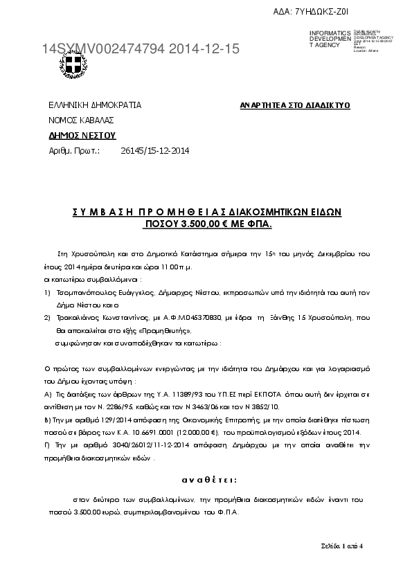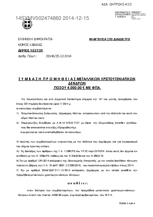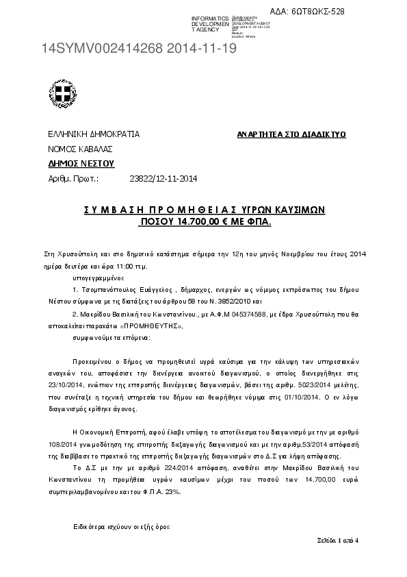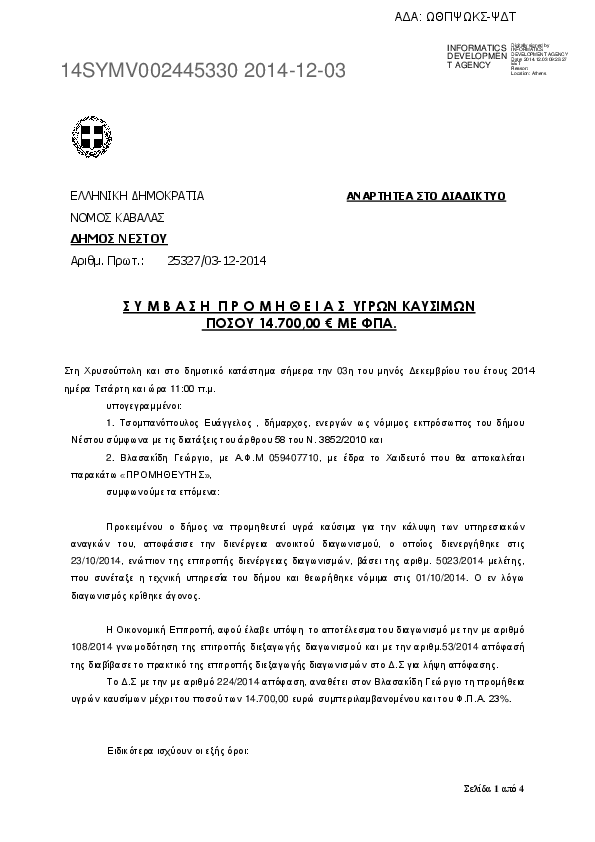 1. Σ Υ Μ Β Α Σ Η Π Ρ Ο Μ Η Θ Ε Ι Α Σ ΥΓΡΩΝ ΚΑΥΣΙΜΩΝ ΠΟΣΟΥ 14.700,00 € ΜΕ ΦΠΑ.