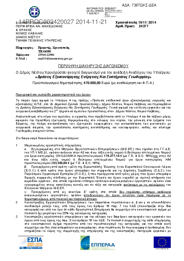 Αναζήτηση σε προκηρύξεις και συμβάσεις για: