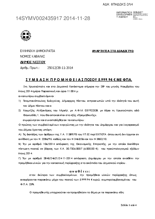 4. Σ Υ Μ Β Α Σ Η Π Ρ Ο Μ Η Θ Ε Ι Α Σ ΠΟΣΟΥ 5.999,94 € ΜΕ ΦΠΑ.