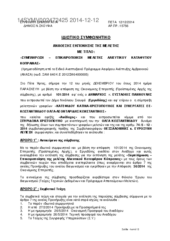 4. ΣΥΜΠΛΗΡΩΣΗ ΕΠΙΚΑΙΡΟΠΟΙΗΣΗ ΜΕΛΕΤΗΣ ΑΛΙΕΥΤΙΚΟΥ ΚΑΤΑΦΥΓΙΟΥ ΚΟΠΡΑΙΝΑΣ ΑΝΑΣΑ ΕΣΠΑ