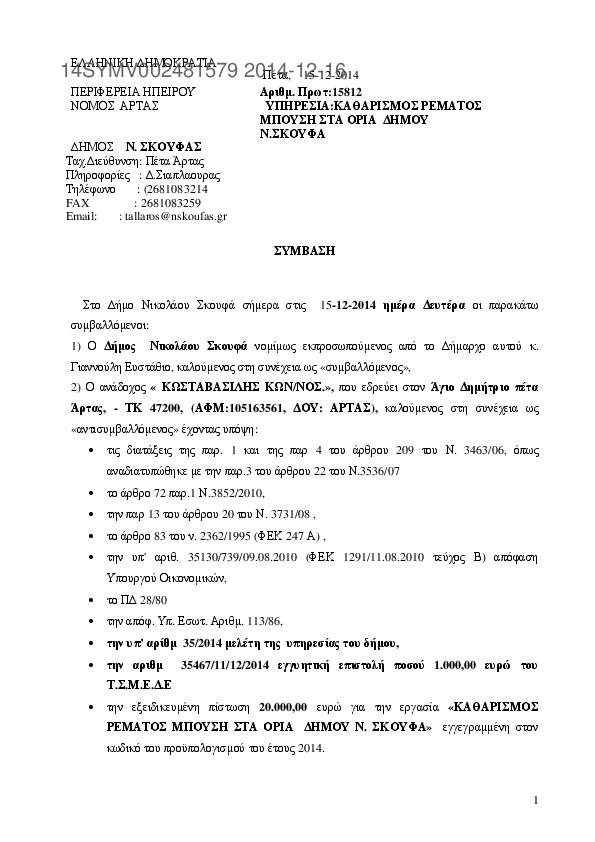5. ΚΑΘΑΡΙΣΜΟΣ ΡΕΜΑΤΟΣ ΜΠΟΥΣΗ ΣΤΑ ΟΡΙΑ ΔΗΜΟΥ Ν.ΣΚΟΥΦΑ