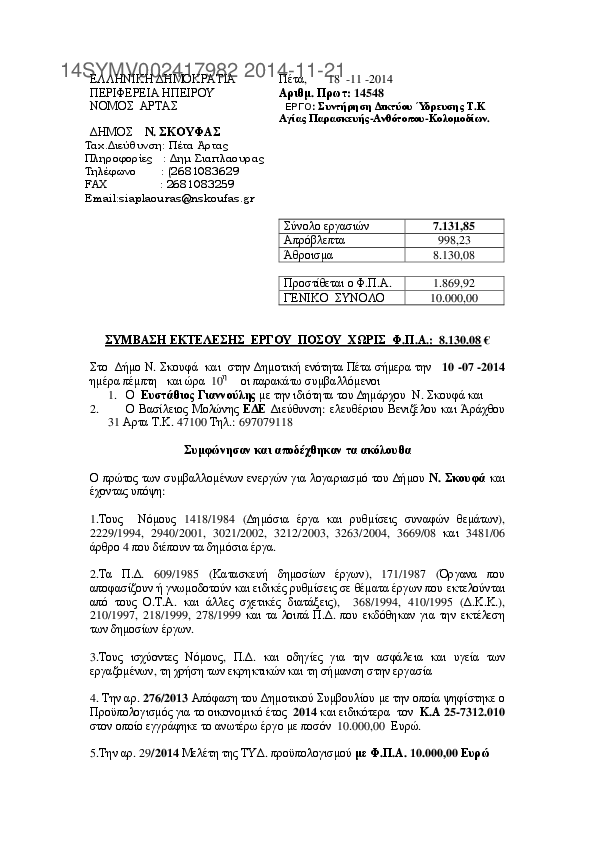 10. Συντήρηση δικτύου ύδρευσης Μεγάρχης Νεοχωρακίου Αμφιθέας ΣΑΤΑ