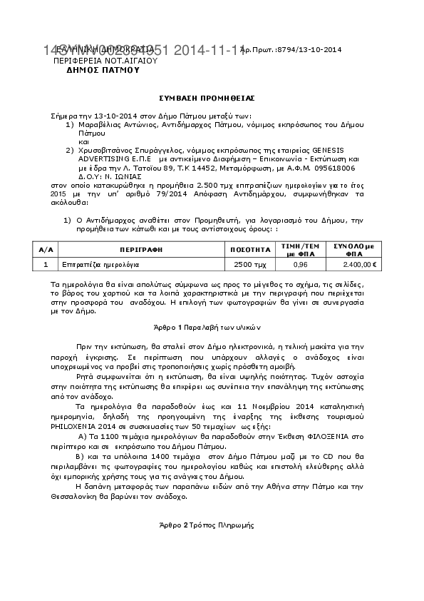 1. Προμήθεια διαφημιστικών ημερολογίων