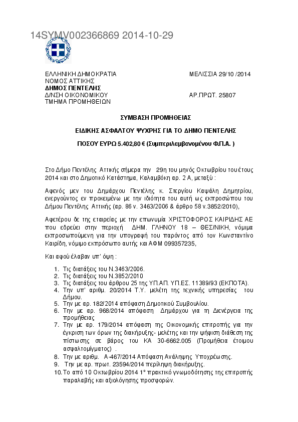 3. ΣΥΜΒΑΣΗ ΠΡΟΜΗΘΕΙΑΣ ΑΣΦΑΛΤΟΜΙΓΜΑΤΟΣ ΔΗΜΟΥ ΠΕΝΤΕΛΗΣ