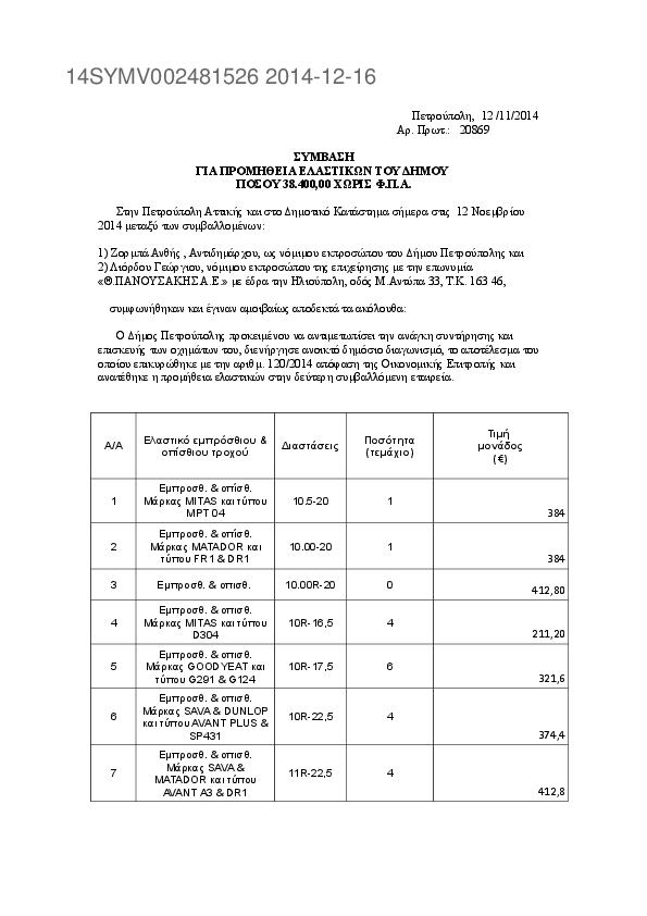 7. ΣΥΜΒΑΣΗ ΠΡΟΜΗΘΕΙΑΣ ΕΛΑΣΤΙΚΩΝ ΤΟΥ ΔΗΜΟΥ