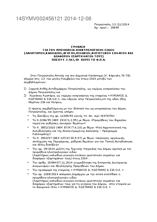 4. ΣΥΜΒΑΣΗ ΓΙΑ ΤΗΝ ΠΡΟΜΗΘΕΙΑ ΗΛΕΚΤΡΟΛΟΓΙΚΩΝ ΕΙΔΩΝ