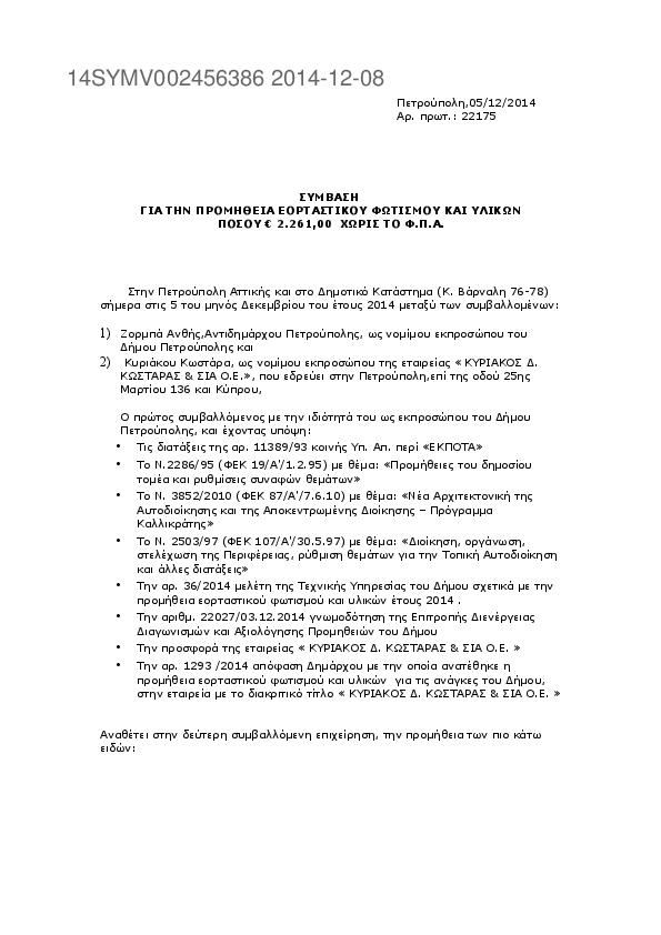 5. ΣΥΜΒΑΣΗ ΓΙΑ ΤΗΝ ΠΡΟΜΗΘΕΙΑ ΕΟΡΤΑΣΤΙΚΟΥ ΦΩΤΙΣΜΟΥ ΚΑΙ ΥΛΙΚΩΝ