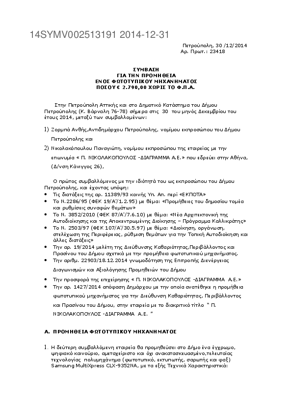 10. ΣΥΜΒΑΣΗ ΓΙΑ ΤΗΝ ΠΡΟΜΗΘΕΙΑ ΦΩΤΟΤΥΠΙΚΟΥ ΜΗΧΑΝΗΜΑΤΟΣ ΔΙΕΥΘΥΝΣΗΣ ΚΑΘΑΡΙΟΤΗΤΑΣ