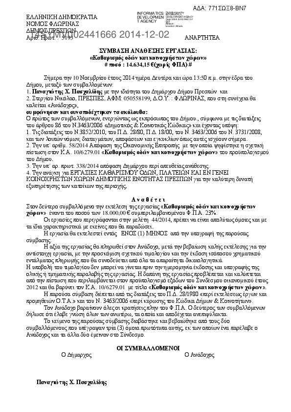 2. Σύμβαση καθαριότητας δημαρχειακού κτιρίου