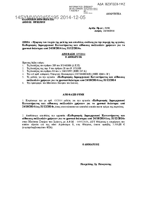 Αναζήτηση σε προκηρύξεις και συμβάσεις για: