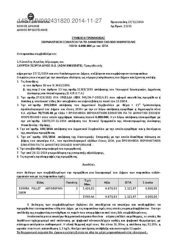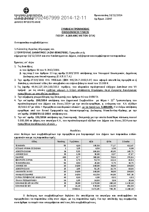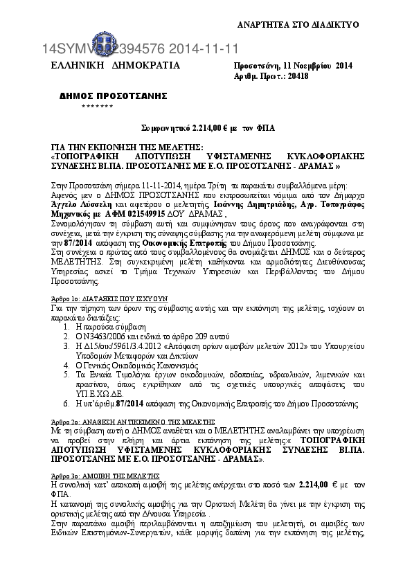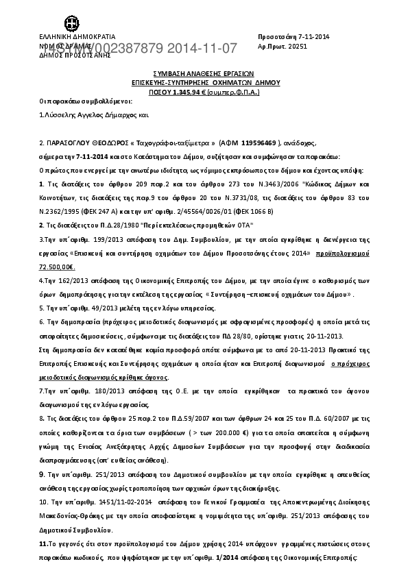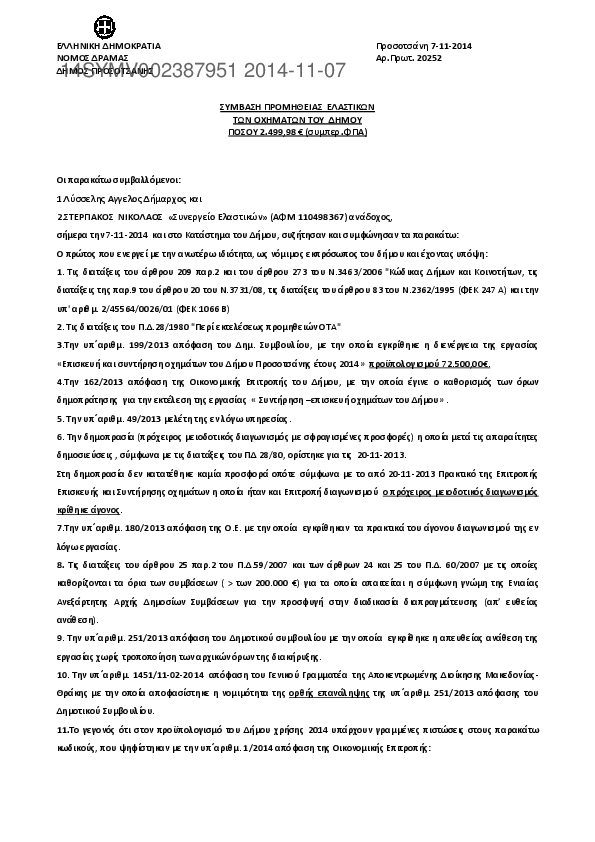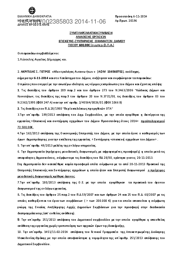 1. ΣΥΜΠΛΗΡΩΜΑΤΙΚΗ ΣΥΜΒΑΣΗΓΙΑ ΕΠΙΣΚΕΥΗ ΚΑΙ ΣΥΝΤΗΡΗΣΗ ΟΧΗΜΑΤΩΝ ΤΟΥ ΔΗΜΟΥ ΕΤΟΥΣ 2014