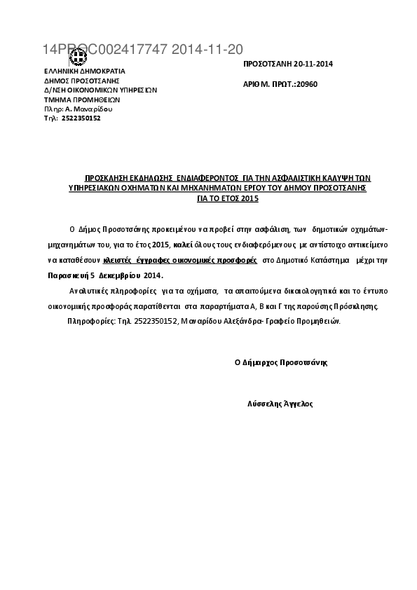 Αναζήτηση σε προκηρύξεις και συμβάσεις για: