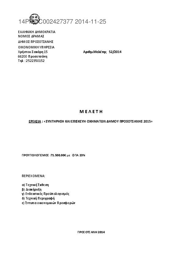 8. ΣΥΝΤΗΡΗΣΗ ΚΑΙ ΕΠΙΣΚΕΥΗ ΟΧΗΜΑΤΩΝ ΔΗΜΟΥ ΠΡΟΣΟΤΣΑΝΗΣ ΕΤΟΥΣ 2015