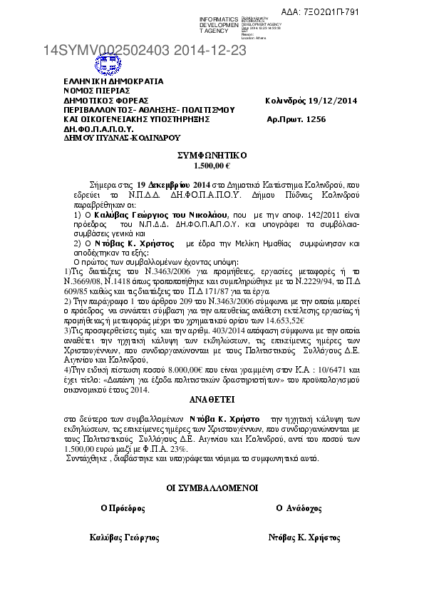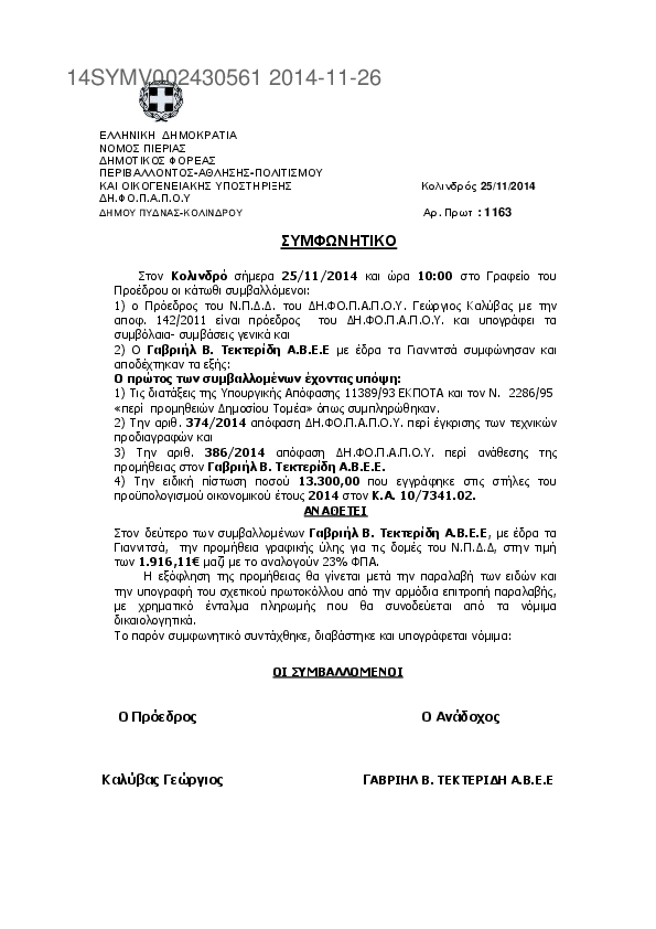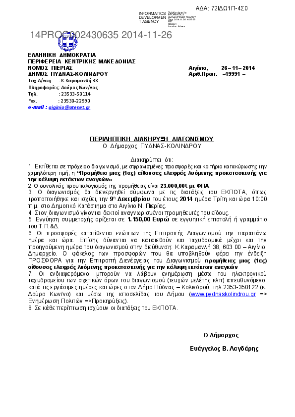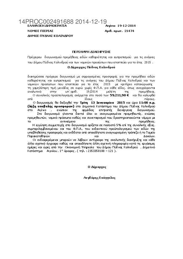 Αναζήτηση σε προκηρύξεις και συμβάσεις για: