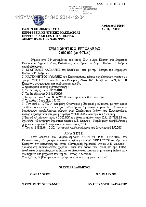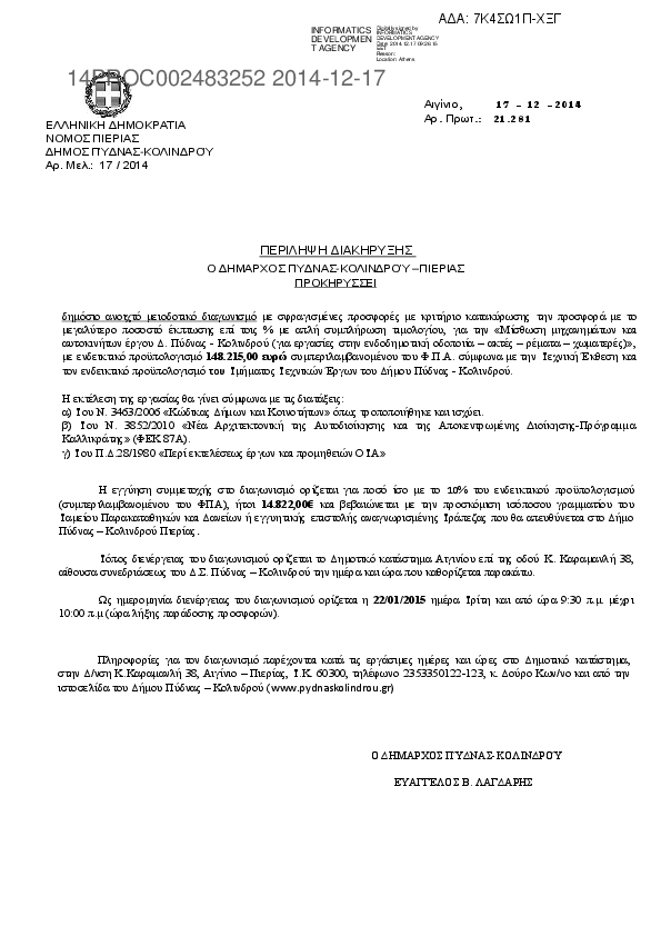 7. ΜΙΣΘΩΣΗ ΜΗΧΑΝΗΜΑΤΩΝ ΚΑΙ ΑΥΤΟΛΙΝΗΤΩΝ ΕΡΓΟΥ ΔΗΜΟΥ ΠΥΔΝΑΣ-ΚΟΛΙΝΔΡΟΥ
