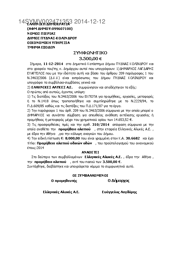 Τα δεδομένα από το Κεντρικό Ηλεκτρονικό Μητρώο Δημοσίων Συμβάσεων (ΚΗΜΔΗΣ) ανακτώνται από τους δημιουργούς του εργαλείου DEiXTo καθώς το ΚΗΜΔΗΣ δεν παρέχει ανοικτά δεδομένα. Για περισσότερες πληροφορίες:
