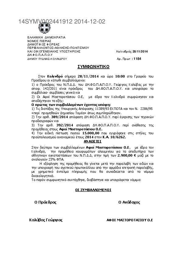 8. ΠΡΟΜΗΘΕΙΑ ΕΙΔΩΝ ΚΑΘΑΡΙΟΤΗΤΑΣ ΚΑΙ ΕΥΠΡΕΙΣΜΟΥ ΕΤΟΥΣ 2015 ΓΙΑ ΤΟ ΔΗΜΟ ΠΥΔΝΑΣ ΚΟΛΙΝΔΟΡΥ ΚΑΙ ΤΑ ΝΟΜΙΚΑ ΠΡ