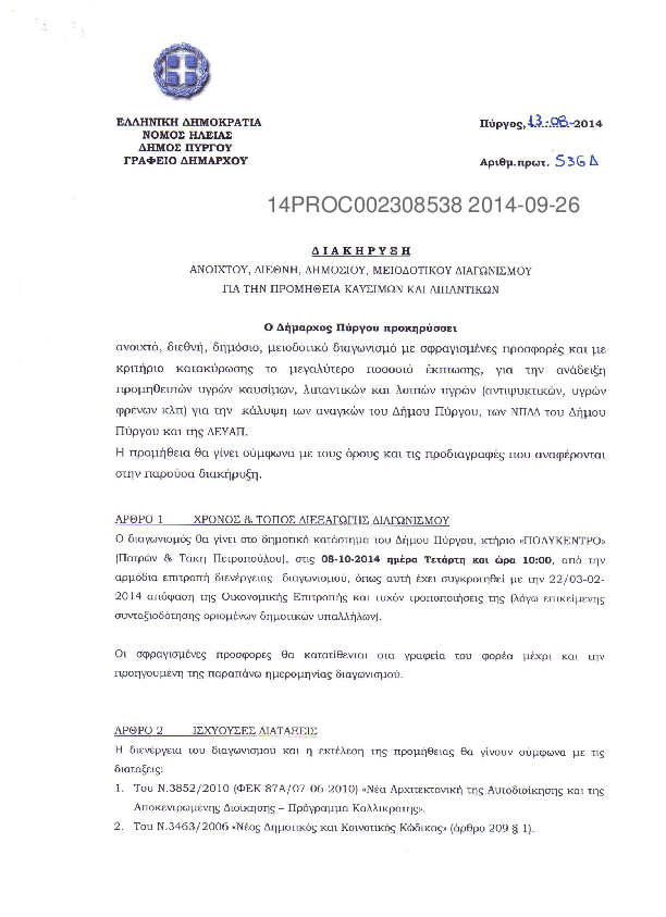 Αναζήτηση σε προκηρύξεις και συμβάσεις για: