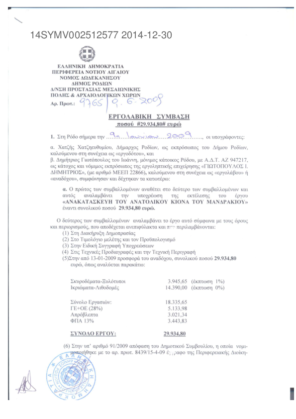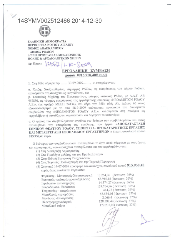 7. Αποκατάσταση Εθνικού Θεάτρου Ρόδου, Υποέργο 1- Προκαταρκτικές εργασίες και μεταστέγαση εξοπλισμού