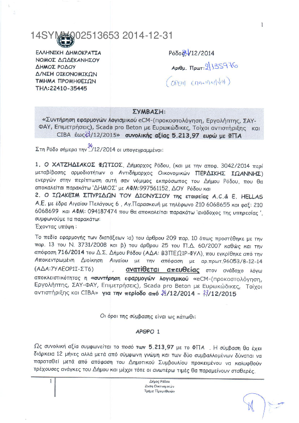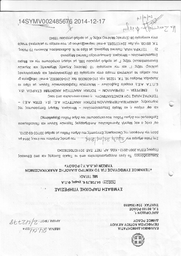 10. Συντήρηση εφαρμογών λογισμικού eCM,Scada,Τοίχοι αντιστήριξης και CIBA έως 23/12/2015