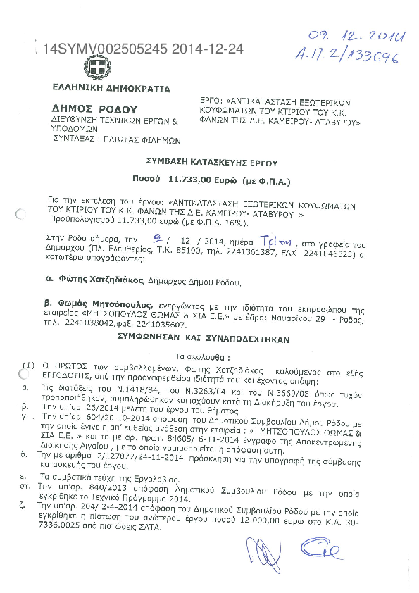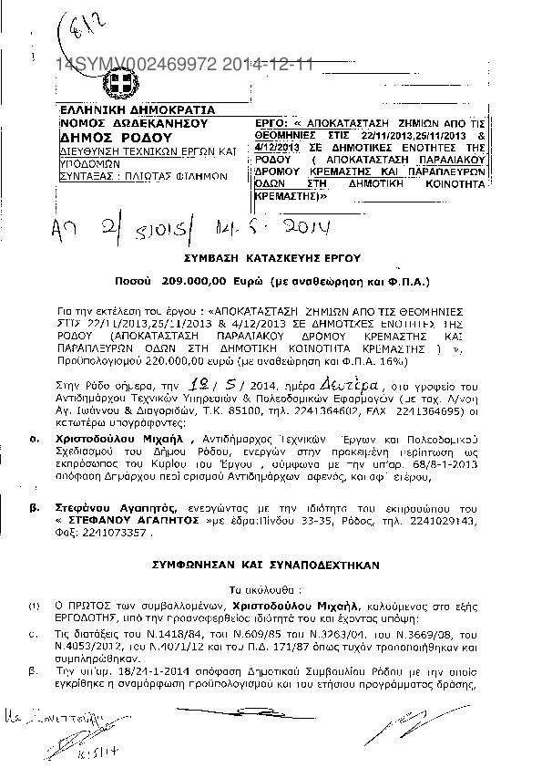2. ΑΠΟΚΑΤΑΣΤΑΣΗ ΖΗΜΙΩΝ ΑΠΟ ΤΙΣ ΘΕΟΜΗΝΙΕΣ ΣΤΙΣ 22/11/2013,25/11/2013 ΚΑΙ 4/12/2013 ΣΕ Δ.Ε. ΡΟΔΟΥ ( ΑΠΟΚΑ