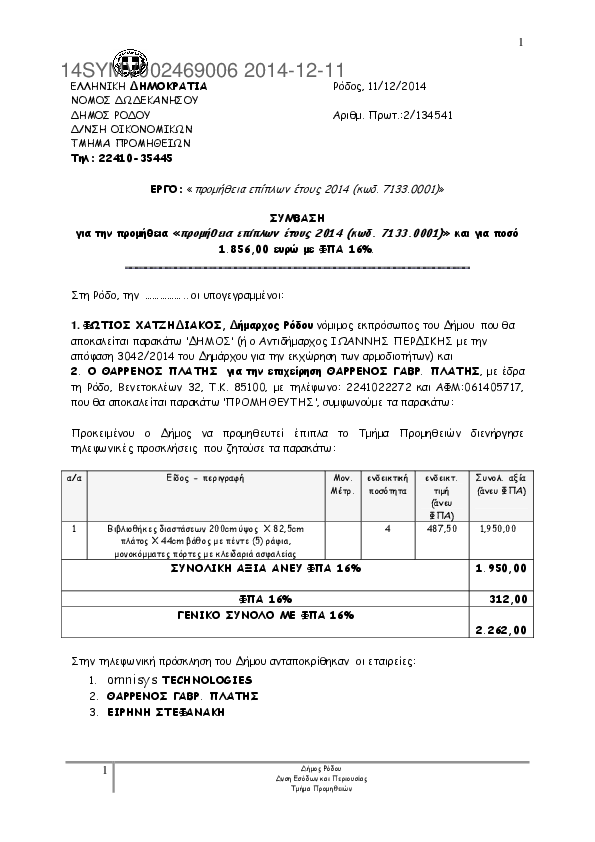 Αναζήτηση σε προκηρύξεις και συμβάσεις για: