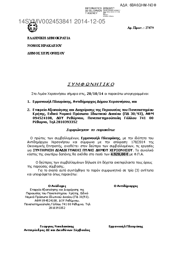 5. ΣΥΜΦΩΝΗΤΙΚΟ ΣΥΝΤΗΡΗΣΗ ΔΙΑΔΙΚΤΥΑΚΗΣ ΠΥΛΗΣ ΔΗΜΟΥ ΧΕΡΣΟΝΗΣΟΥ.